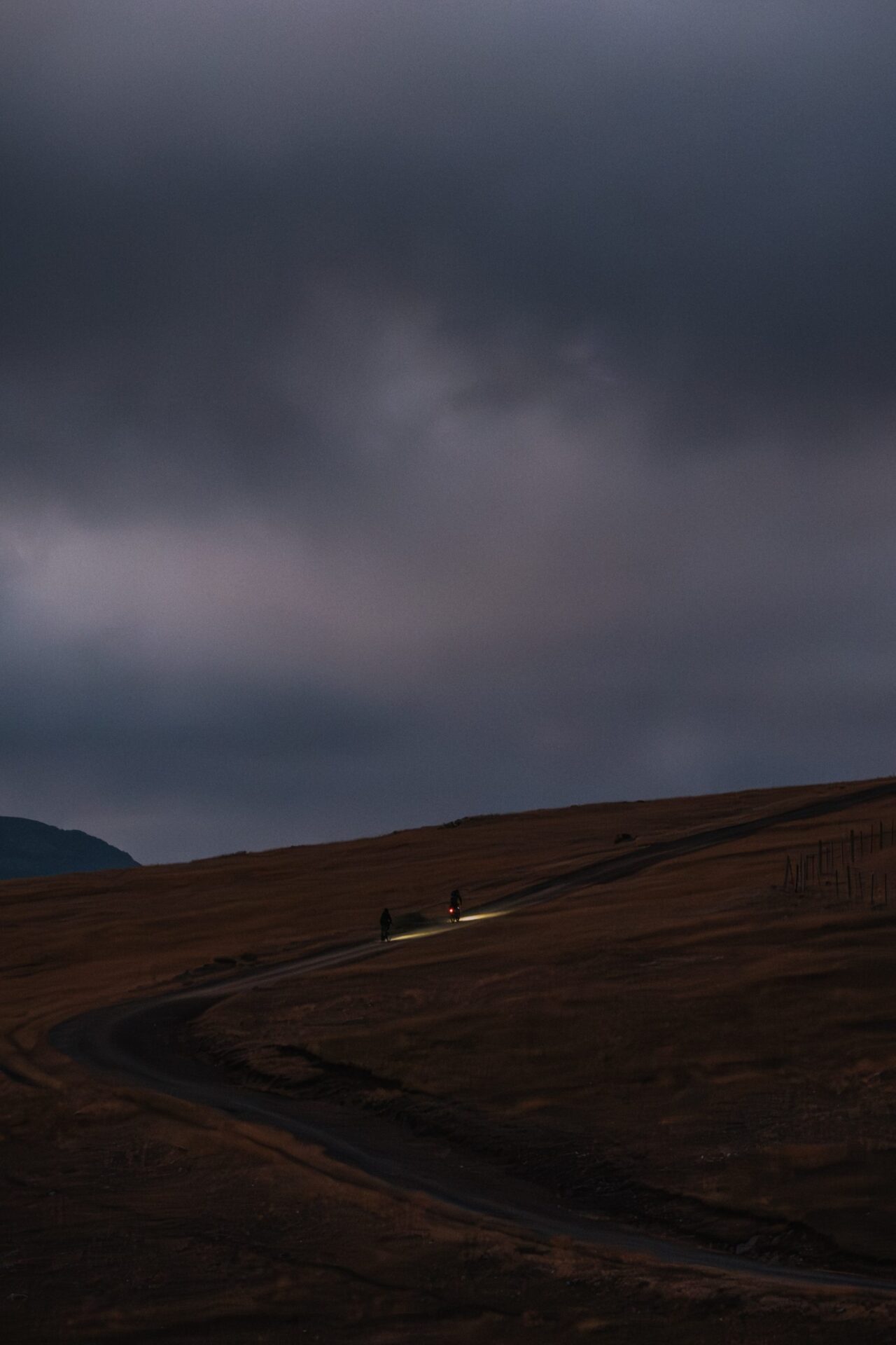 Our front light was about to die, and the first part of the descent required full attention, given the broken gravel and steep slopes. We managed to reach the road that would lead us to the start of the next climb, and after a couple of harpins, it happened. Complete blackout. We managed to stop without crashing and turned on our headlamp, barely strong enough to make out the white line on the road.