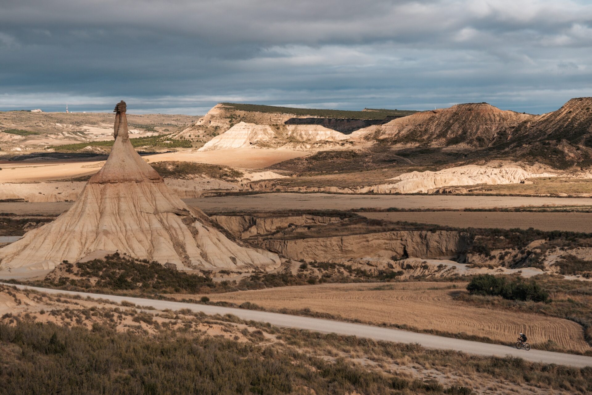 Then, finally, Bardenas. A semi-desert of clay, chalk, and sandstone sculpted by erosion. The wind that had once pushed us now turned against us. Erik, better equipped for rough terrain with his front suspension, surged ahead.