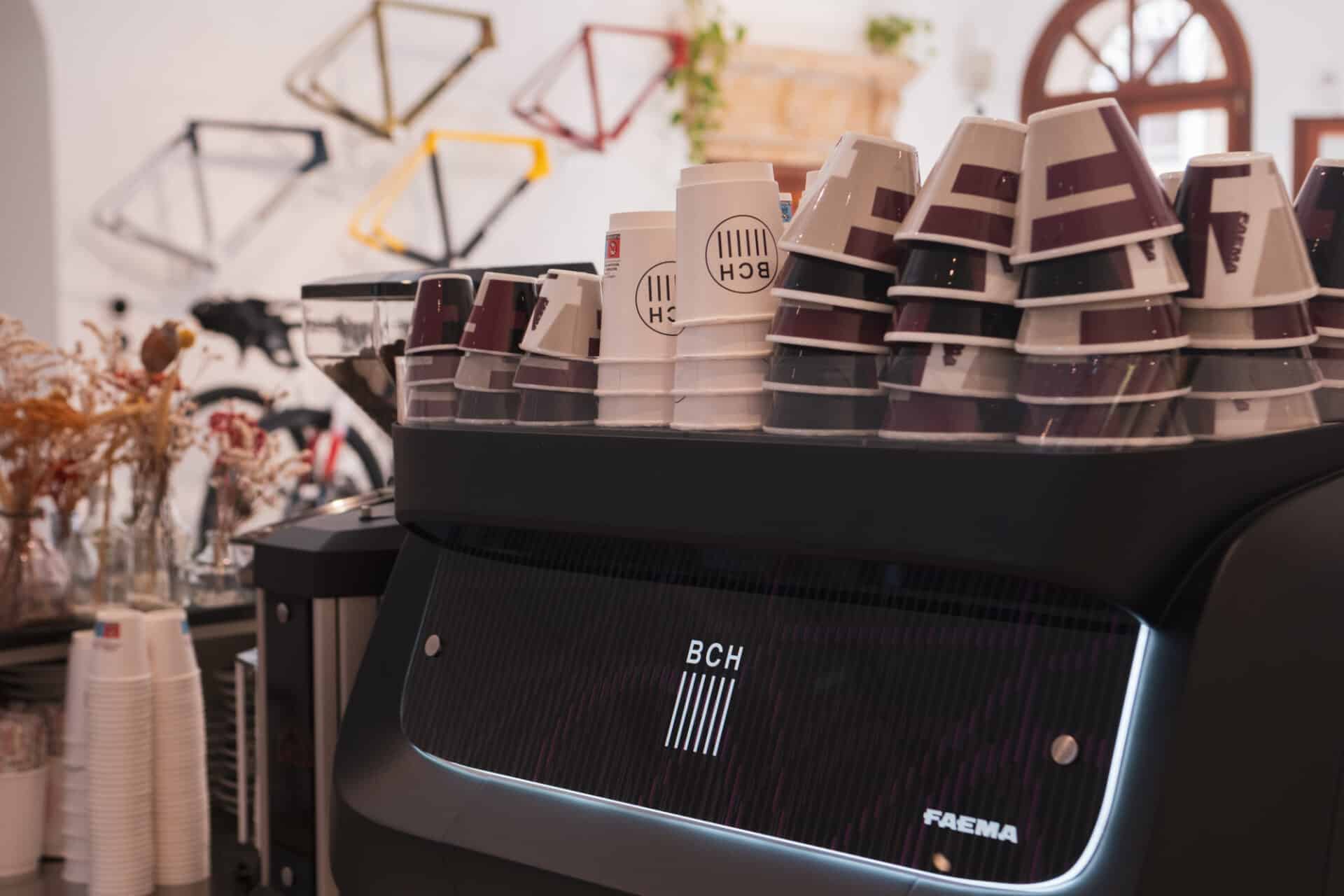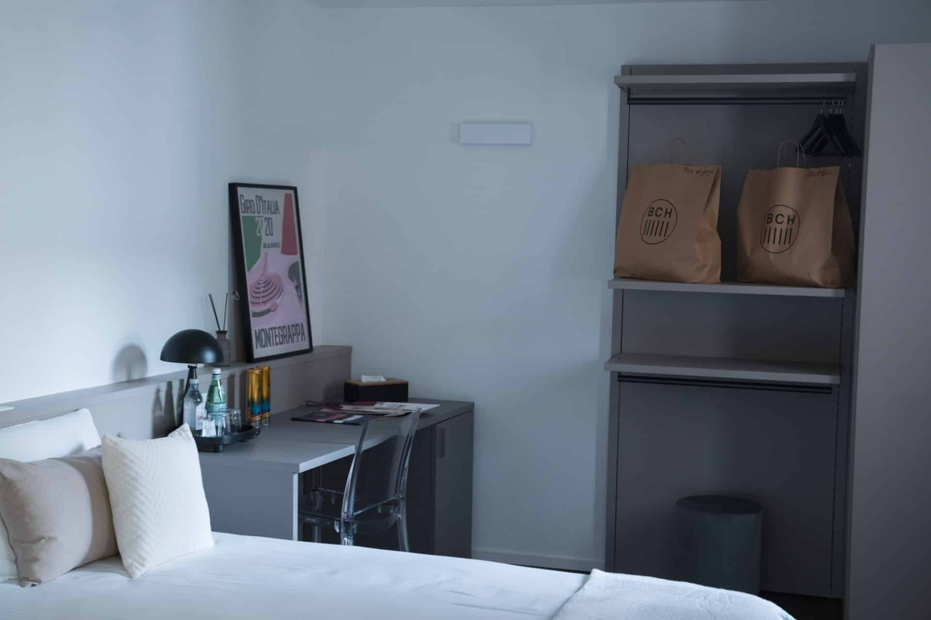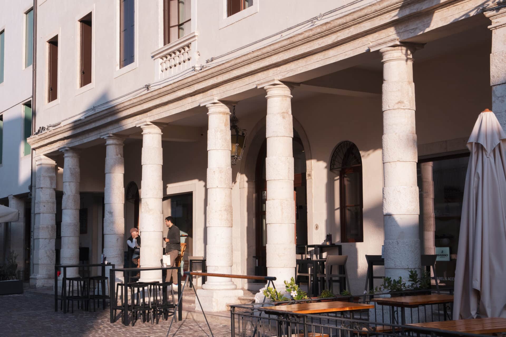 De vuelta en la ciudad, visitamos el Bassano Clubhouse, que es una materialización de la visión de Basso. Ubicado en una antigua sala de exposición de cocinas, este espacio multiusos combina tienda, alquiler, eventos, bar, taller e incluso alojamiento: un auténtico centro ciclista. Estas seis líneas de negocio están representadas por los pilares que se pueden ver en la fachada del edificio.