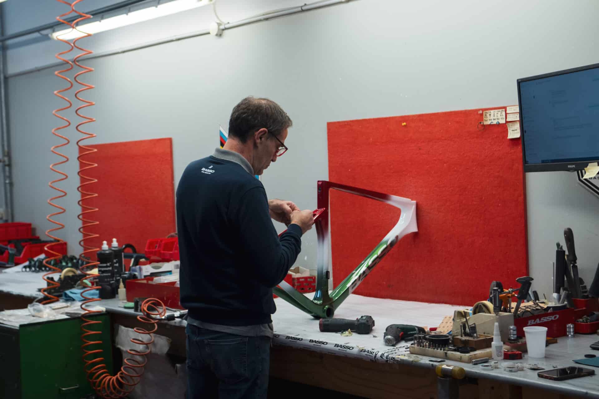 Basso fabrica entre 50 y 70 bicicletas al día, con tan solo ocho mecánicos. No es la forma más rápida, pero es la suya: priorizan la calidad y el trato humano. La flexibilidad es clave, y solo las marcas con control sobre todo el proceso de producción pueden reaccionar con la suficiente rapidez. Basso es una de las pocas.