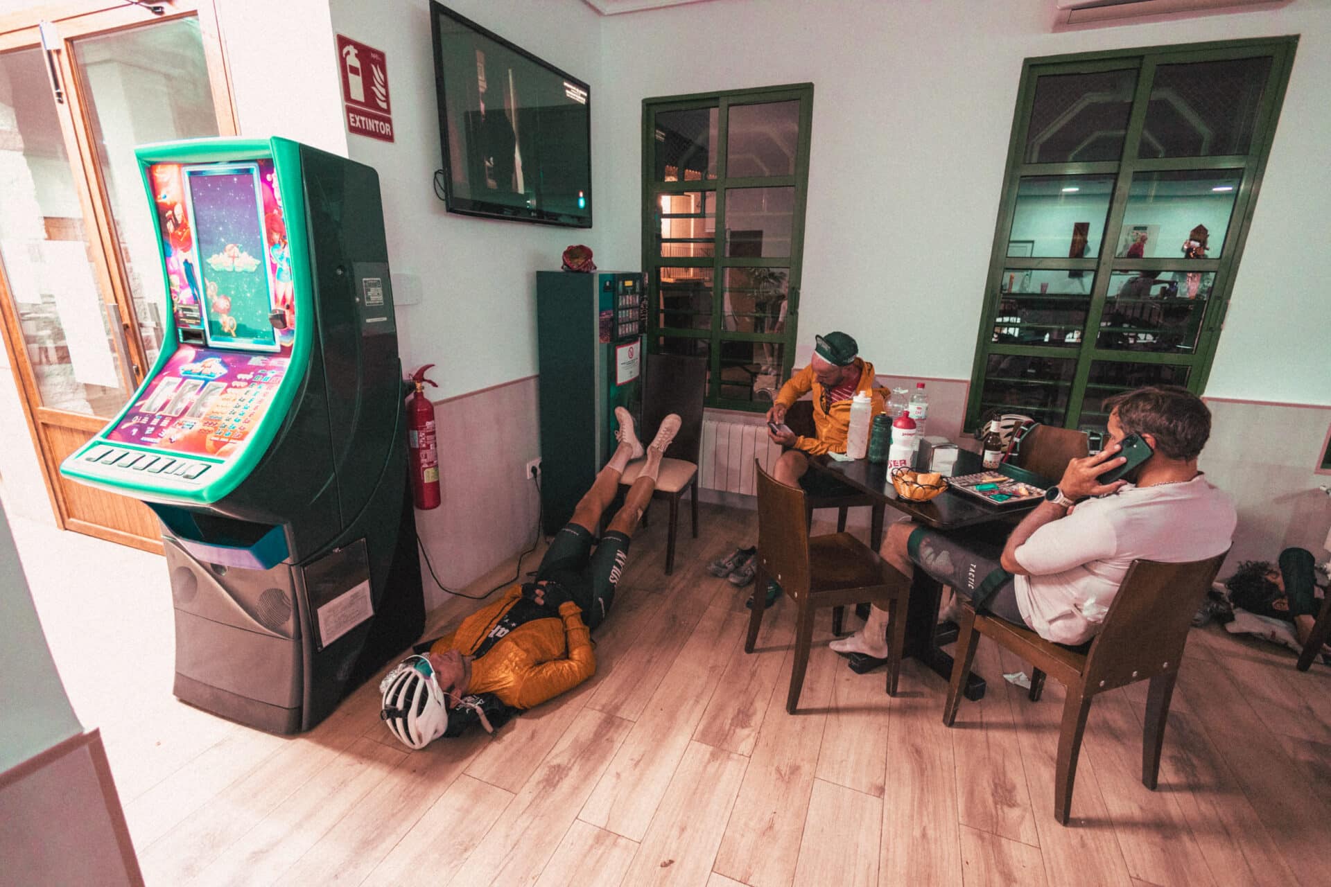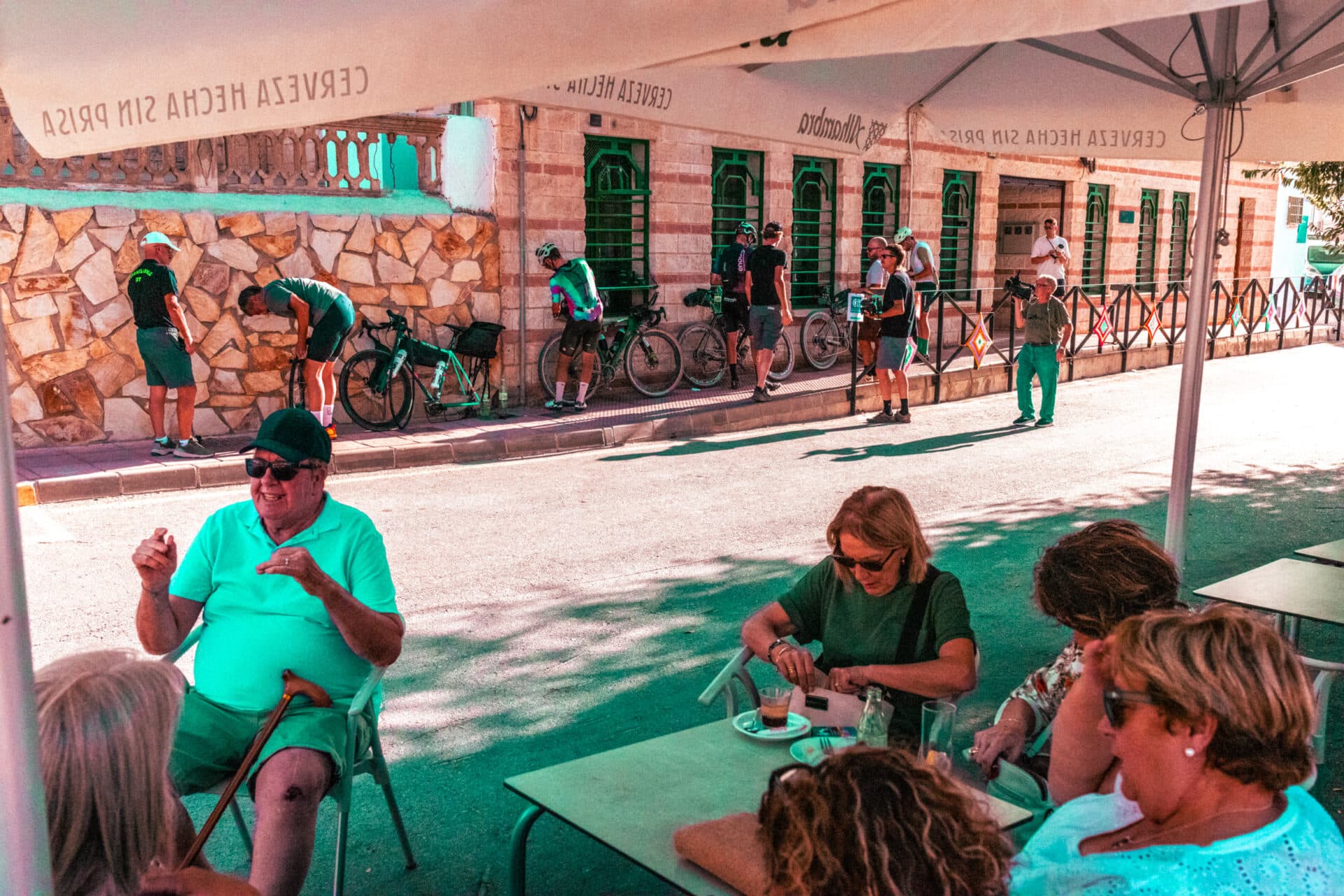 Cinco horas después de llegar al pueblo, habiendo visto una procesión de ciclistas entrar y salir de los bares y supermercados de Gor, le pedimos ahora una actualización de la situación a Rafa.