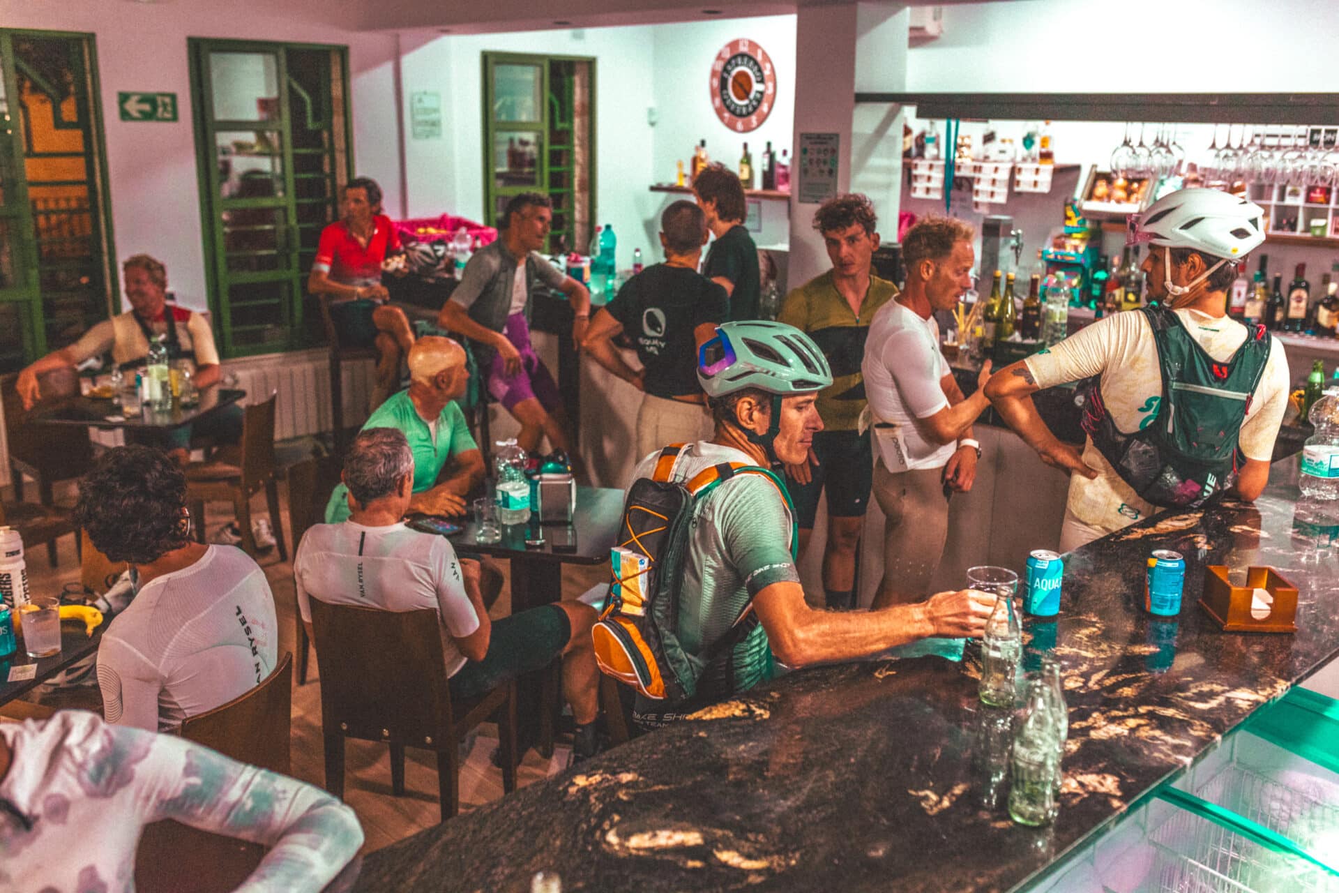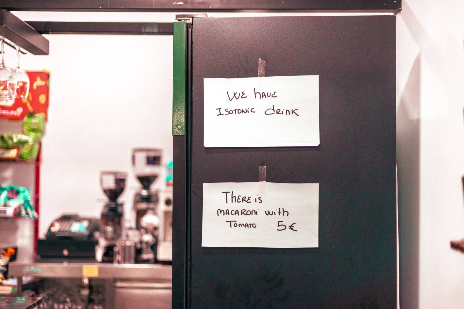 De fondo, Álex, el otro camarero, corre con un carro de la compra lleno de agua para reponer neveras. Esa disculpa me parece tan generosa como los carteles de la nevera anunciando el menú preparado a conciencia para ultraciclistas.