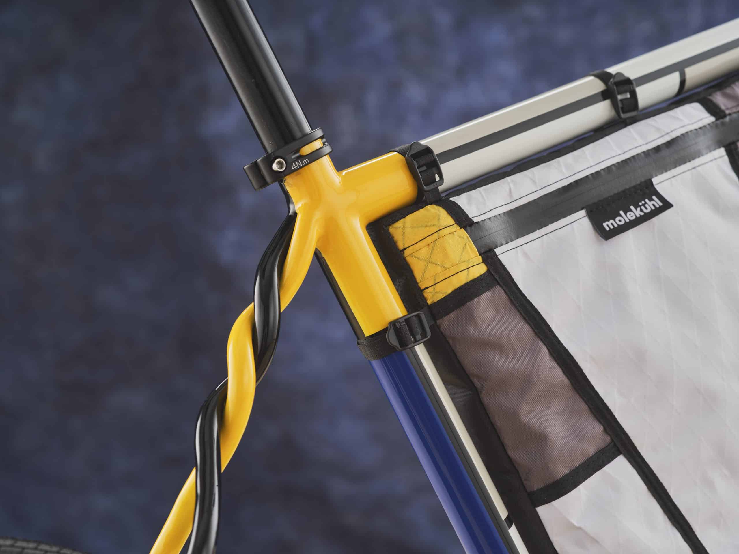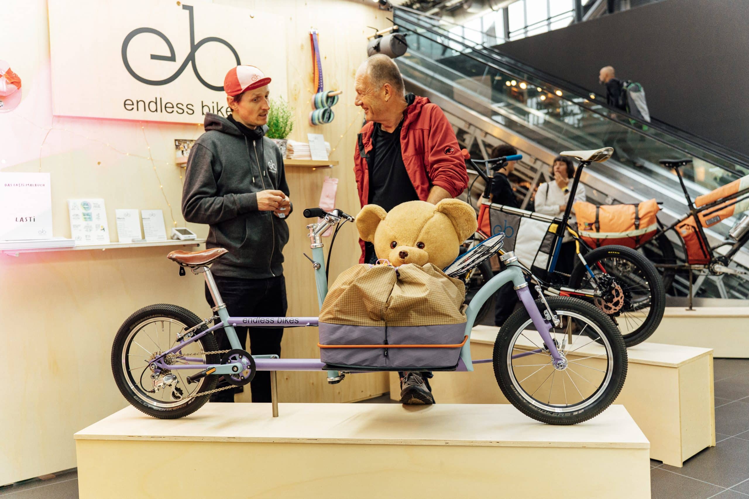 Entre las muchas que llamaron nuestra atención estuvieron dos bicicletas de Endless Bikes, entre ellas, una bicicleta de carga para niños que prestaba gran atención a todos los pequeños detalles e incluso unas manetas de freno tamaño infantil. Acompañada por una bolsa de Molekühl premiada en esta misma edición, la bicicleta fue una incorporación ingeniosa a la exposición. El giro es un recurso que parece gustar a Endless Bikes, como se ve en las bainas traseras entrelazadas, que captó la atención de muchos, con un diseño inspirado en la icónica obra de Piet Mondrian y equipada con una bolsa de cuadro perfectamente combinada.
