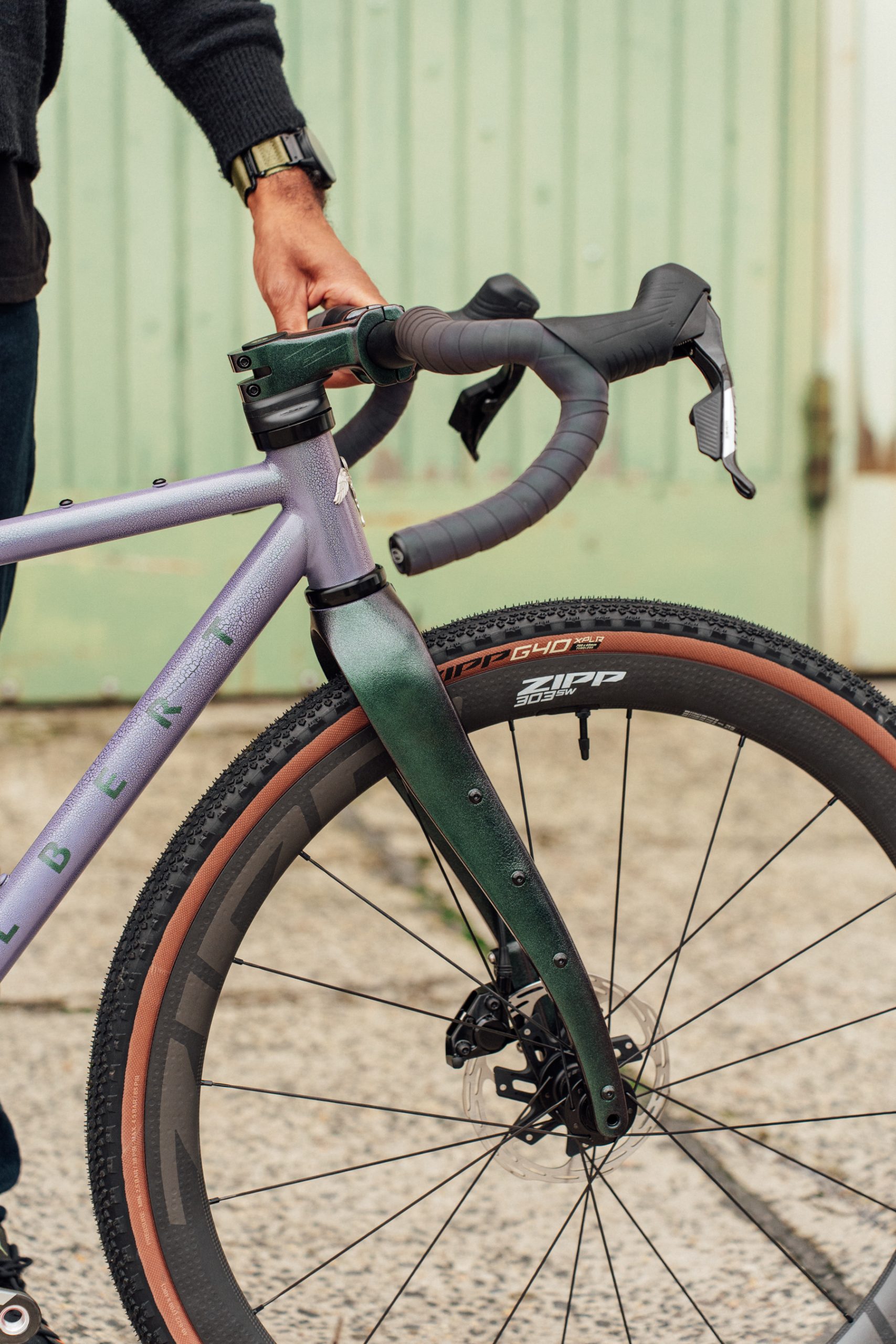 La parisina Bordure Cycles adopta un enfoque diferente, igualmente innovador. Su geometría personalizada, con tubos y capas a medida, se combina con juntas de titanio impresas en 3D, lo que permite reemplazar los tubos en caso de daño. Pierre, el talentoso constructor, ha demostrado esta habilidad durante varios años, habiendo ganado un premio en ediciones anteriores de Bespoked.