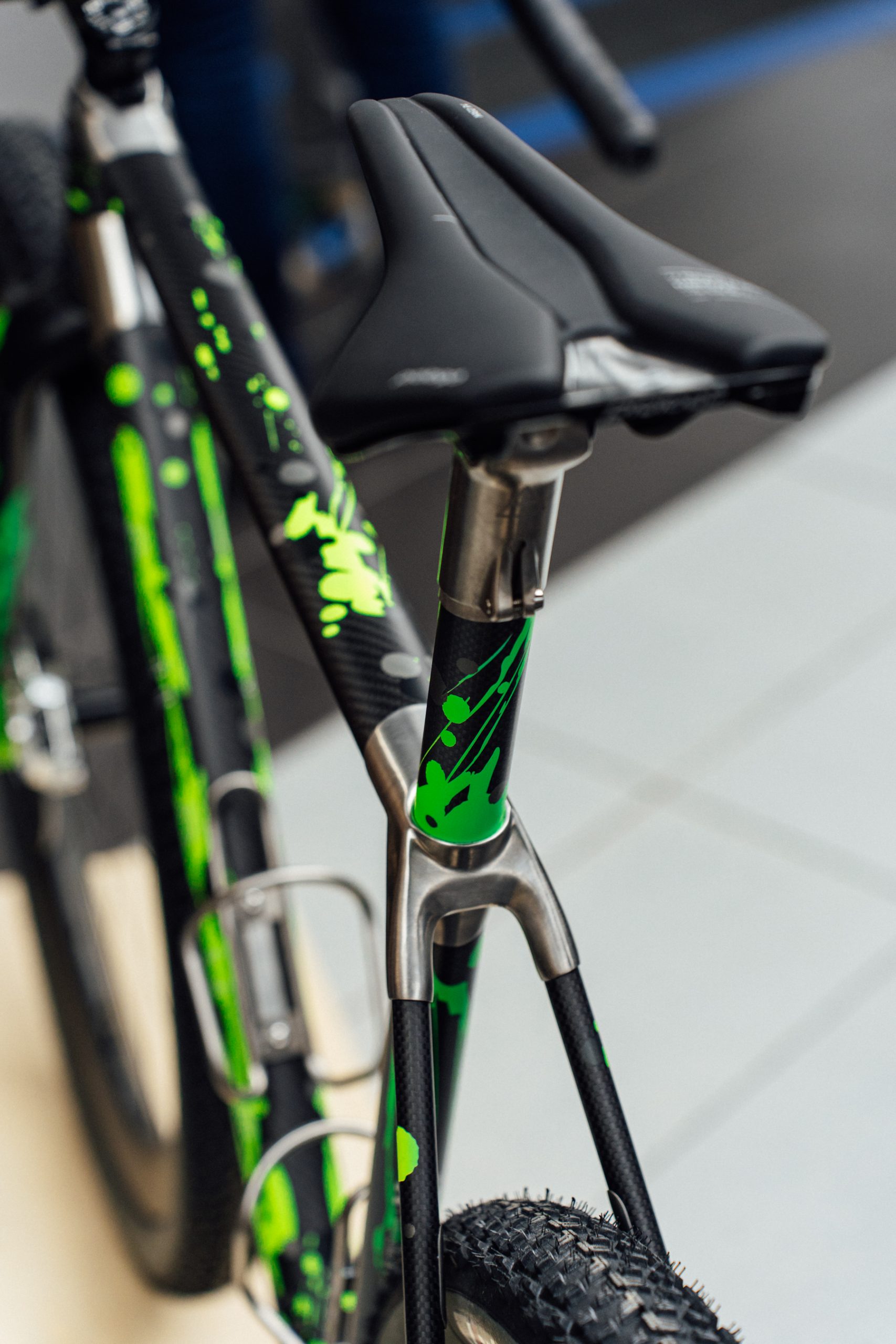 La Drust, una bicicleta de montaña rígida de acero sobredimensionado con transmisión Pinion y un juego de bolsas realizado en colaboración con Rvmble y Wit Slingers, fue otra de las bicicletas que llamó nuestra atención, junto a la bicicleta de montaña de 32 pulgadas de Ballern. Las ruedas de 32” fueron un tema bastante comentado durante esta edición; veremos si se convierten en una tendencia ampliamente adoptada.