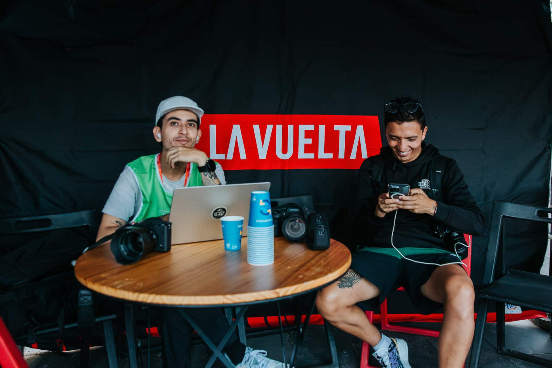 2025 fue la primera vez que La Vuelta es Así cubrió una Gran Vuelta femenina con acreditación oficial. Tuvieron acceso a la línea de meta, a los equipos y al funcionamiento interno de la carrera. “Nos sorprendió la dignidad con la que la carrera y la organización tratan a los medios de comunicación. Como hay menos cobertura en comparación con el ciclismo masculino, tenemos mejores condiciones, más beneficios y más oportunidades”, admite Mateo.