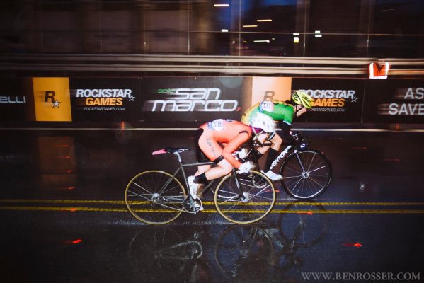 Neil Bezdek es el hombre de rojo.  La persona con más carreras de RHC ganadas desde que empezó este campeonato y ganador absoluto del Red Hook Crit 2013, y que...
