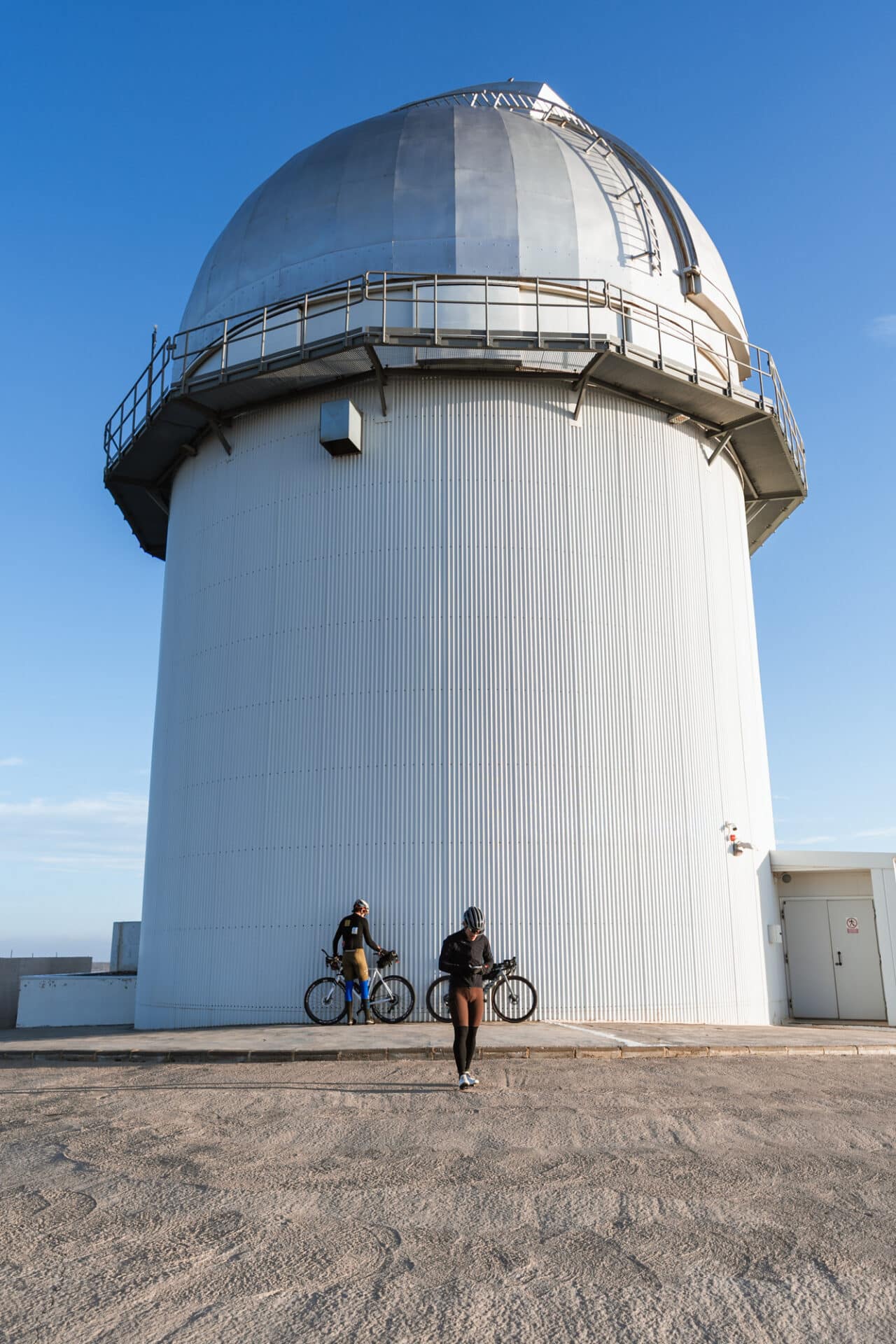 After a short rest, the final 5 kilometers of the climb approached, where the gradient rarely fell below 10%. However, the encouragement of Javier, the Graval photographer who had gotten up early to capture our climb, combined with the fact that we were already beginning to see the summit and the sunrise, gave us the strength we needed to make it to the Javalambre Astrophysical Observatory, the third checkpoint on the route.