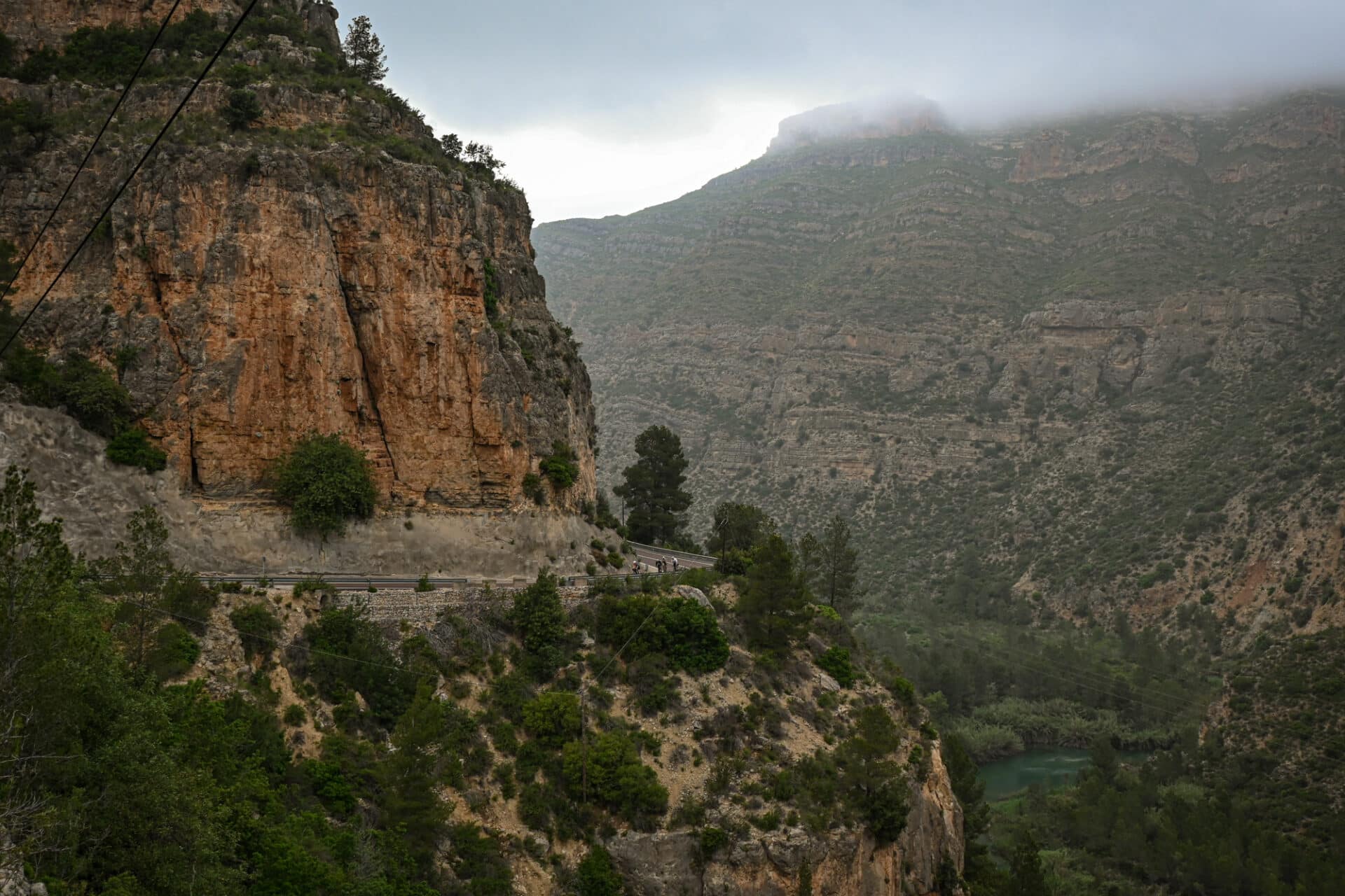 After reaching the top, a descent began, in which we rode past Dos Aguas and continued towards Millares, leading us to the crosspoint to Otonel. This road traversed beautiful cliffs and canyons created by the Júcar River. This incredible landscape helped us take our minds off the gradient, which at some point reached two digits.