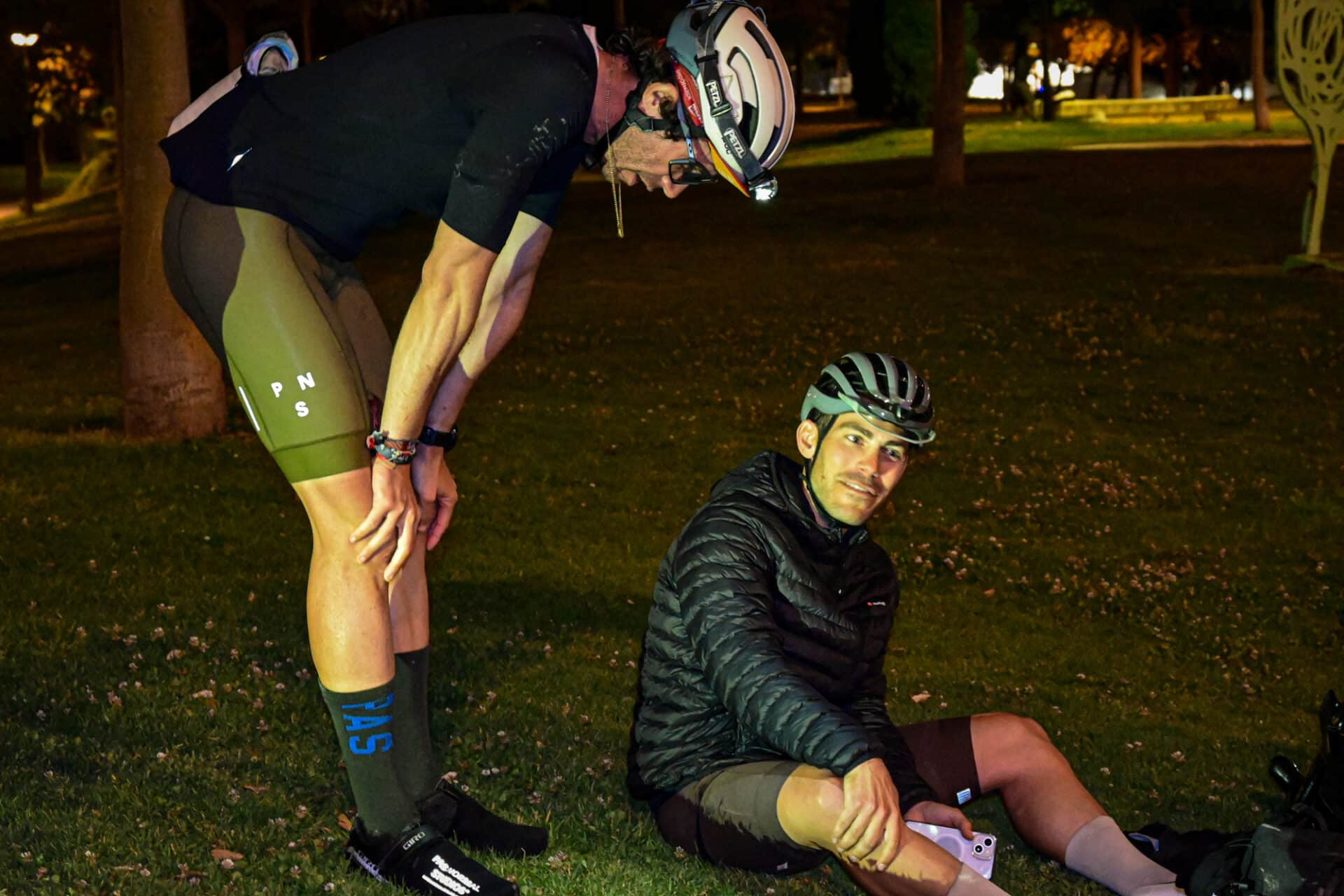 On Friday, May 2nd, at 5 a.m., we started riding from the Palacio de la Música in Valencia towards the Albufera Natural Park. The first 30 kilometers were completely flat, in the middle of the night, with some rain warnings that eventually delivered a few drops. We rode as a group, and although the pace was a bit high for some, we tried to stay on the wheel until we left the Albufera. The goal was to save as much energy as possible and avoid the wind, which in this area was mainly headwind.