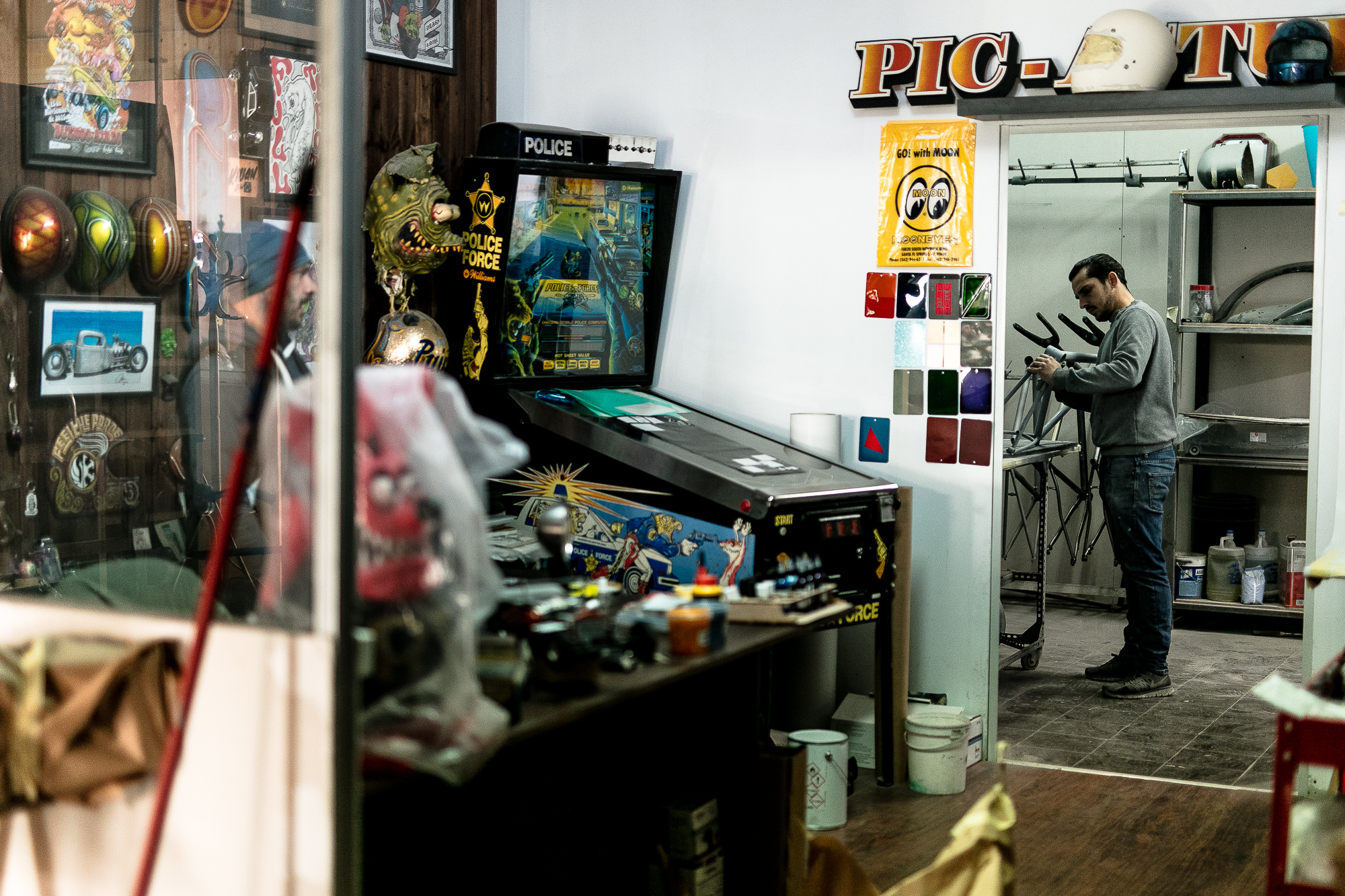 You have to go back a few years, when you are young you work at everything, as much as you can, in my case from making chips to bartending in discos, until I started to stabilize when I started working with my father in the textile sector, first in the clothing distribution facet and ending up working in design (streetwear, hip hop clothing, skateboarding), but in 2010 the company closed down. I tried to continue with what I was doing, but I couldn’t get into design work. Looking for a way out, I took a two-month course in car works, but I hardly learned anything… By then, even now, I really liked motorcycles. I was interested in the ‘custom’ world, especially the ‘metal flakes’ but I had no idea how to make them.