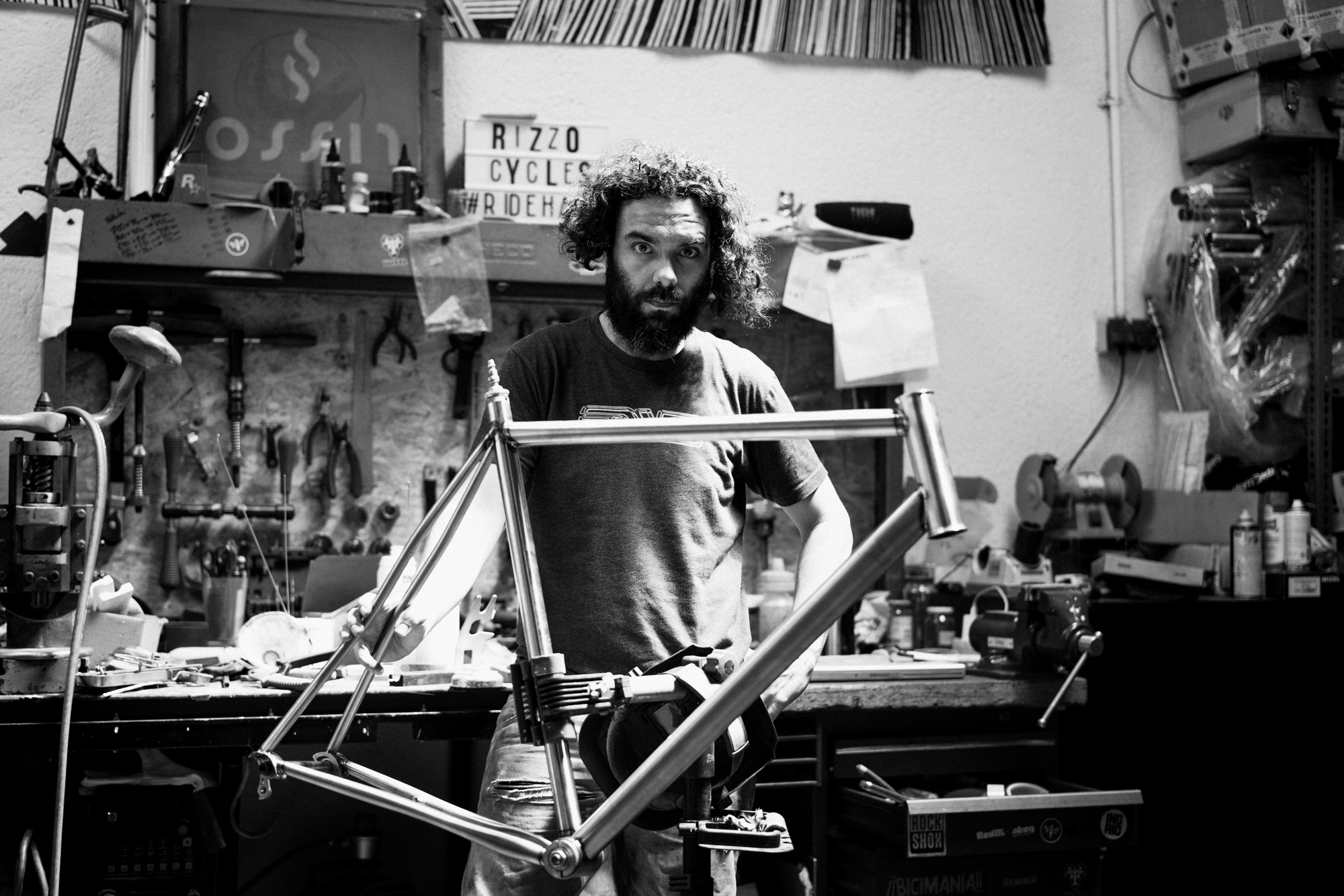 During some time we came across him, back then still working as a sound engineer, in all types of fixed gear events, like criteriums and alleycats. It was the moment when hand-built steel frames were beginning to be seen in races like the Red Hook Criterium, and it was at that time that Rizzo’s interest in that world began to develop inside him.