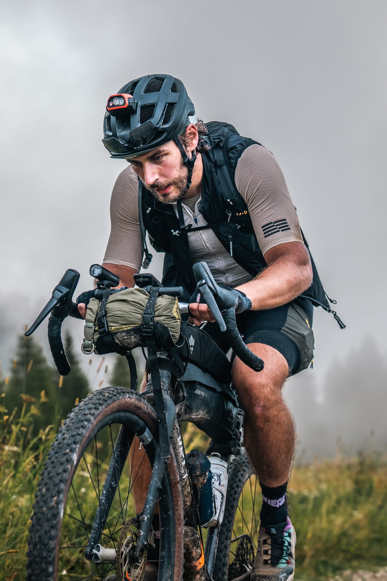 The start and finish line of the event organized by Orbit360 is tucked into the grassy banks of Ahoi Minigolf, an odd but charming social hub in Bolzano. From there, riders can choose to embark on three routes: Entree (490 km with 17,000 m of elevation gain), Classic (780 km with 28,000 m of elevation gain), and Adventure (1,100 km with 40,000 m of elevation gain). There’s no time limit. No podium. Just you, your bike, and the Dolomites.