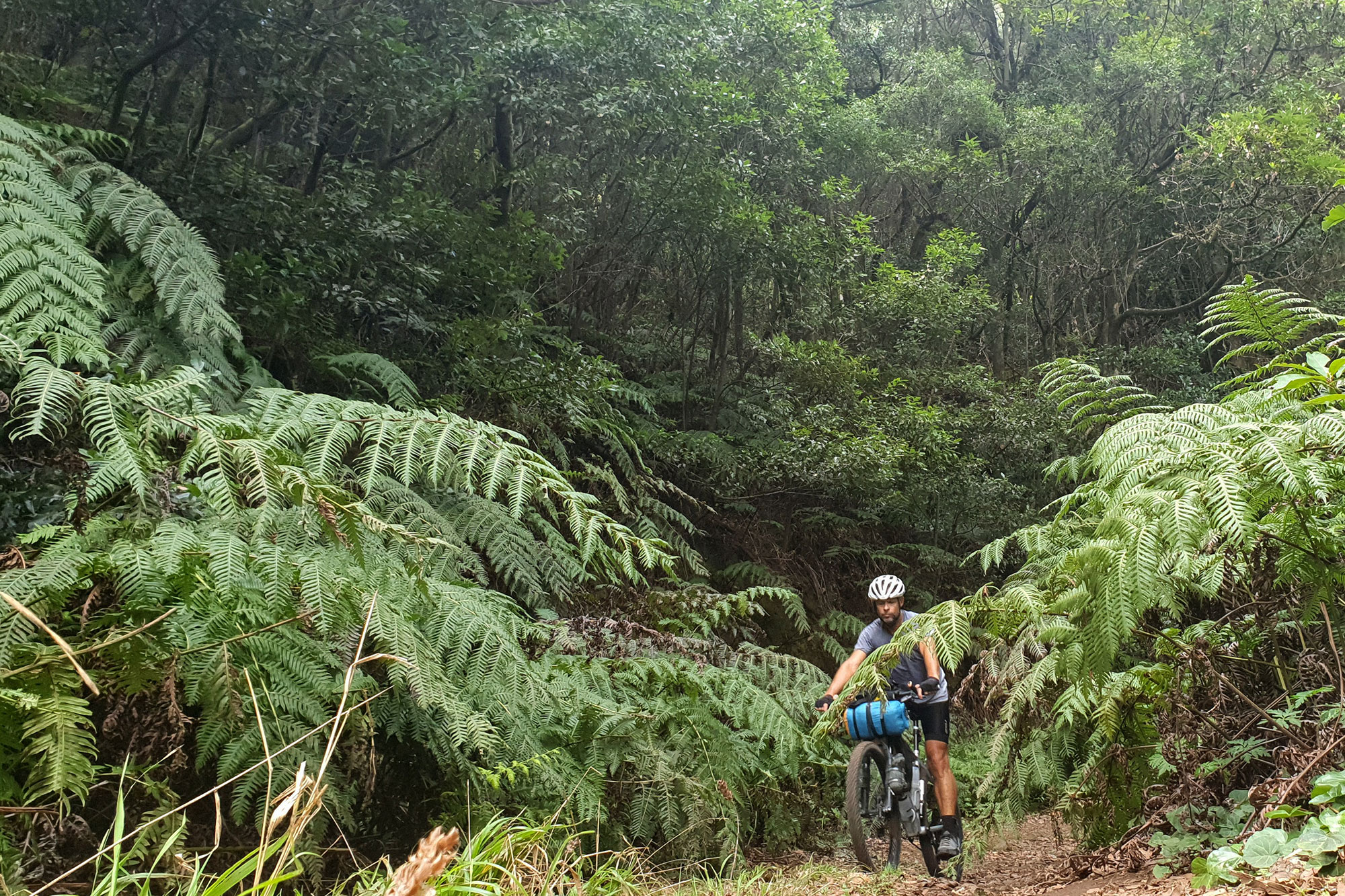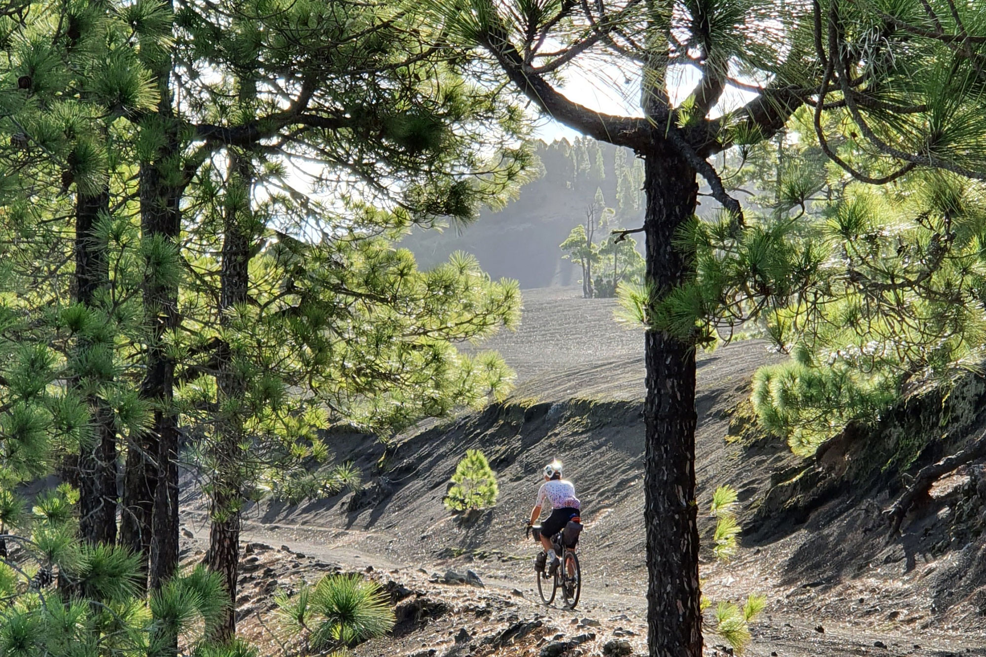 Si nos centramos en la ruta en gravel, por ejemplo, esta empezará desde la terminal de ferries en La Graciosa, donde se hará una ruta circular. Luego saltaremos a Lanzarote y la cruzaremos de un extremo atravesando sus paisajes negros volcánicos. Lo siguiente serán los desiertos de Fuerteventura con dunas que nos trasladarán al Sáhara. Una vez en Gran Canaria tendremos que subir por bosques hasta el Pico de las Nieves a 1.949 m sobre el nivel del mar para bajar de nuevo y montarnos al ferry hasta Tenerife, donde no pararemos de subir hasta ver el Teide. Finalmente, último ferry hasta El Hierro y su paisaje escarpado. El recorrido es 70% sin asfaltar con un terreno compacto y rodador, quitando el desnivel.