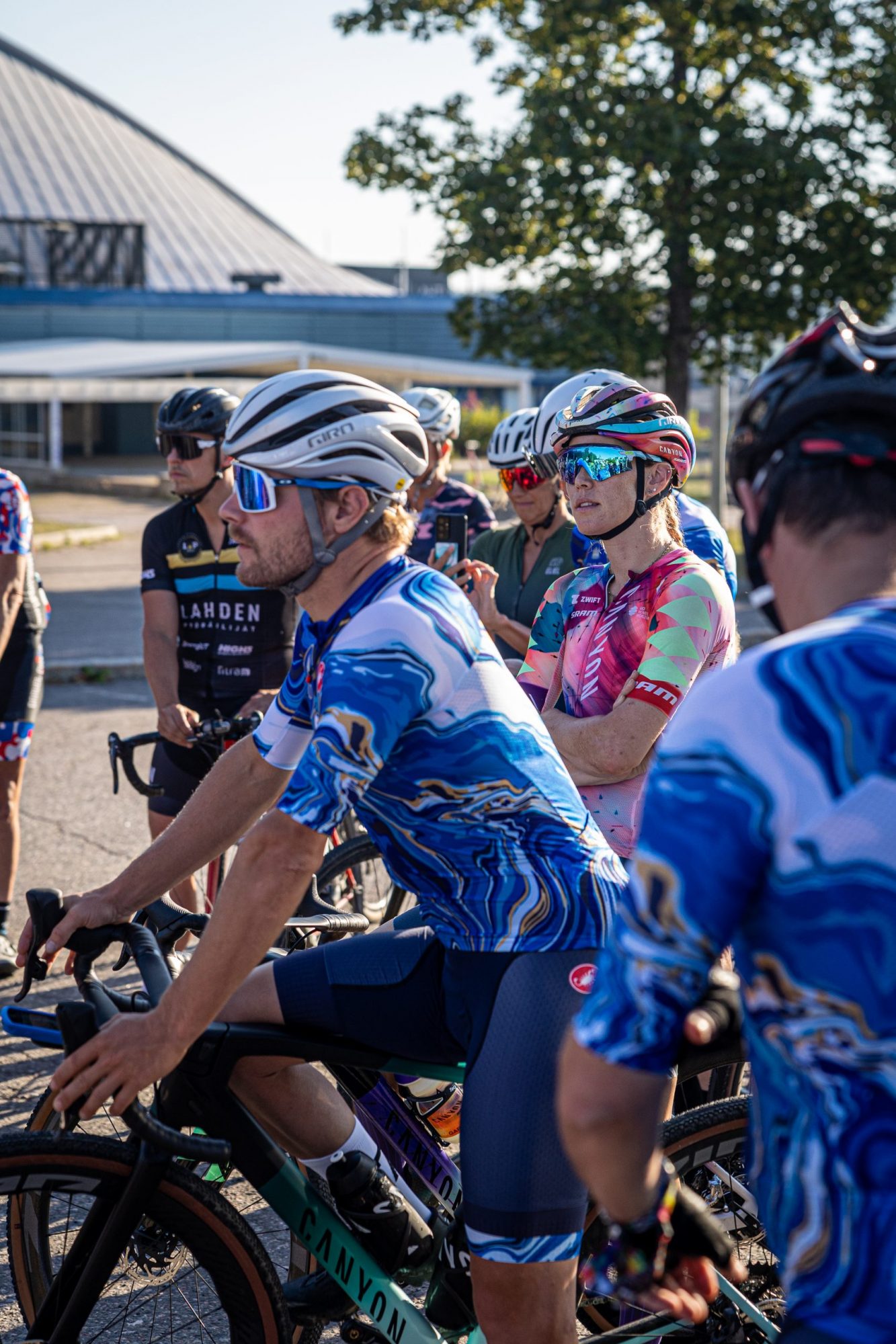 The mandatory photos ahead of the start were taken, and we of course made sure we appeared just behind Valtteri and Tiffany Cromwell, rider for CANYON//SRAM Racing. The ride leaders gave the green light and we headed northwest within the Päijät-Häme region.