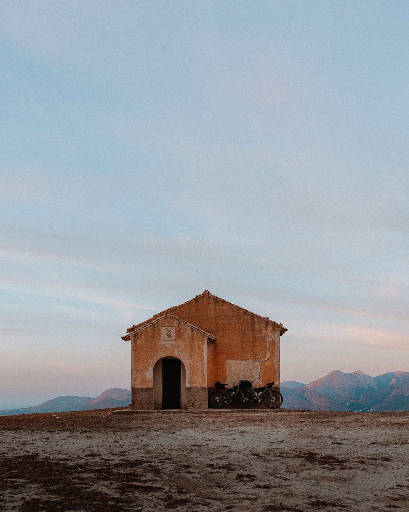 This remote landscape features a dense network of gravel tracks, most of them in good condition. Scattered along the way are several refuges where you can spend the night, seek shelter from the weather, or simply take a break. One of them, the Campo del Espino refuge, marked the end of our second stage. We stopped there to rest, check that our bikes were still in prime condition, and have dinner with the food we’d been carrying since Pozo Alcón, knowing there wouldn’t be many chances to resupply ahead.